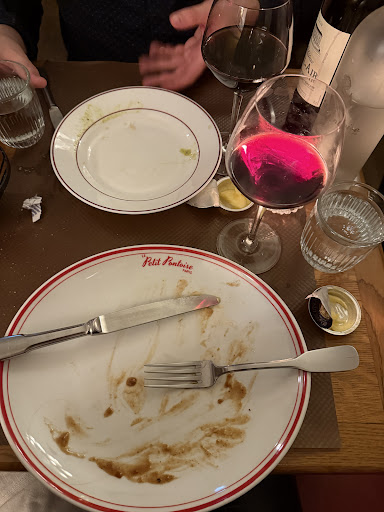 The long version: My boyfriend and I came to Paris to celebrate our anniversary and ended up having dinner at LPP two nights in a row. Our waitress Pauline is probably the best waitress Iโve ever had. All of my dishes I tried are dishes I will never order again until I come back to this restaurant because I have found the only version I ever want to eat. The duck and potatoes were the epitome of โmelt in your mouthโ. The dark chocolate molten cake was rich, not sweet, and perfectly crisp, soft, and gooey, every single cake texture in one bite. The sweetbreads were crisp, soft, and perfect for a first timer (but warn them they will never get anything better). The level of detail in the plates, ambiance, and menu are impeccable. The rule of everyone hanging coats on a communal coat rack, and waitstaff as kind as in Kansas but with that French flair puts the cherry on top of this restaurant. When I dream of a French restaurant, this is what I am going to dream of. I am counting down the minutes until I return. (Bonus: We asked to buy THE WATER PITCHER because we loved this restaurant so much- they said they wonโt allow it but a lot...