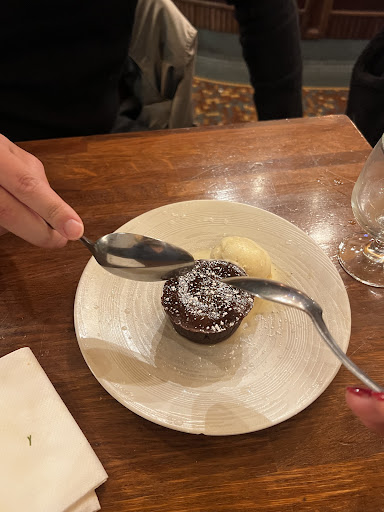 Drinks: Verre de vin Chardonnay 15cl. Starters: Assiette de saumon fumé, crème acidulée, toasts & rillettes. Mains: Tartare de bœuf Charolais poêlé gratiné au chèvre, accompagné de frites et salade. Confit de canard, pommes sautées et salade. Dessert to share: Moelleux au chocolat et sa boule de glace vanille. The food was magnificent! The dishes, especially the starters, were generous in portion and packed with delicious flavors.