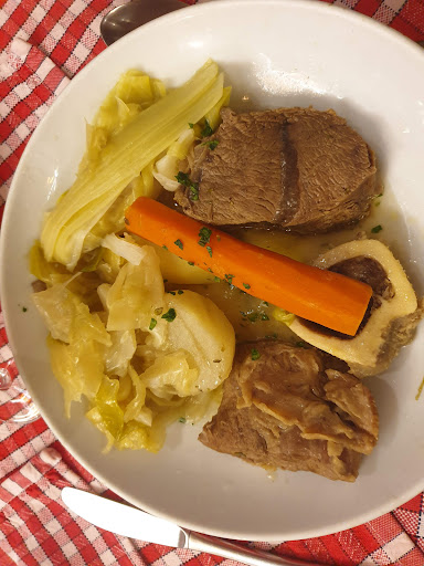 Read moreA quaint restaurant with homemade meals that bring you back to your roots. We had a beef stew with cabbage, carrot, potatoes and each a beef bone with marrow we were to eat with toasted bread. Desserts were apple tort and a chocolate mousse that were amazing. FYI. Menu on chalk board in French so be prepared. Bottles of house wine was 12 euros coming out of a box and they...