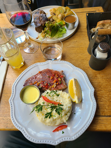 Read moreTotally local bar bistro with locals the majority of clientele. Wow wow wow. We had a formule dejeuner or a set lunch of seared tuna steak with saffron risotto AND a Charolet Beef filet au poivre with scalloped potatoes. Cresmy carrot curry soup as appetizer. The amazing thing is this place is primarily a bar but like many places in France the chef/cuisinier takes their job seriously. The French believe it is their birthright to have good food (like the Spanish) We were on a quick lunch break from a bike tour sit we could not enjoy dessert. Like most French bars that are not specialist wine bars they have s limited selection of wines. Go with a suggestion from the staff but in general know what you like and they will steer you right. The Bordeaux in the picture was not any fancy vintage or grand cru but like most places in Europe... wow 5 euros. Try getting that quality in NYC or Newport Beach for that money.