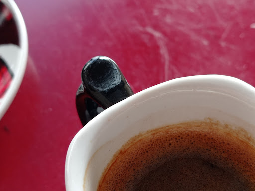 Read moreCela faisait bien longtemps que je n'avais pas vue un café aussi mal tenu. Entre les tasses mal lavé les peintures écaillée un peu partout, la poussière poussée dans un coin ainsi que le film plastique entre deux réfrigérateurs qui ne devraient même pas être visible. L'endroit ressemble à si méprendre à un devis de film post apo. Il aurait franchement besoin d'un bon coup de peinture et d'un œil avisé pour lui redonner ses lettres de noblesse. Ceci sans compter que le café est à 2,20e ce qui n'est pas donné pour l'endroit, même si le tout de celui-ci était plutôt correct. Si vous allez aux toilettes vous aurez peut-être la surprise comme moi de voir des invités aux multiples pattes ramper sous la porte Bon enfin pour mettre une touche de positive, l'accueil quoi que détaché était quand même cordial et correct PS: j''ai évité de prendre des photos de...