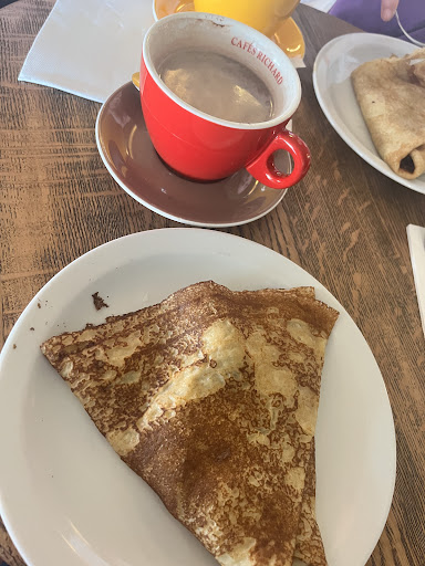 Long Story: Staff was rude, and mocked us in French, which we understood, and just shrugged off at first. Coffee was terrible, stale and very weak. 1 of the 3 Crepes we shared was ok, and edible, the second tasted a little off, the last of which we couldn't finish, it just was foul. Waiter complained to us when he got the order wrong for drinks, 1 coffee and 1 coke for 2 people, and yet he brought 3 drinks... Not a big deal at all, but he then threw up his hands and complained to his collogues that Americans can't do anything right in French, which again we both understood, and laughed at considering we both ordered 1 single drink and he decided to bring 3. Once he realized we understood French, they stopped openly talking about us, but were still whispering and laughing from the counter the entire time we ate. We were the only people in the place (should have been a red flag) After we left I realized they overcharged us for everything extra drink, charged us for water we never asked for and which was also tap water and charged 6+ Euro, but I guess that is on me for not really looking or caring, but they blatantly ripped us off like scumbags. We also both got violently ill stomachs a few hours later that day (without having eaten anything else between then). I have zero doubt it was from this establishment, and I question if it was intentional based on the smack talking from the staff. Avoid this place, there is so many good establishments around there is no reason to ever have to deal with...
