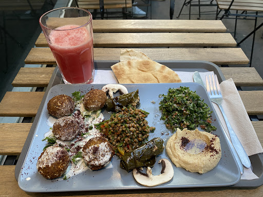 Read moreGood, quickly-prepared food in a no-frills environment. Convenient as you can take it to-go or dine there. I chose to sit outside at one of the tables. There are vegan, vegetarian and meat options. I got the vegan falafel plate and a watermelon-ginger juice. I was pleased that the juice was actual juice, and that combination is great if you’ve been travelling. The falafel plate had just the right amount of food. The tabbouleh and grape leaves were the standouts for me. The cook is very friendly and seems happy to have you there. Overall I’d recommend this as a great place to stop by for...