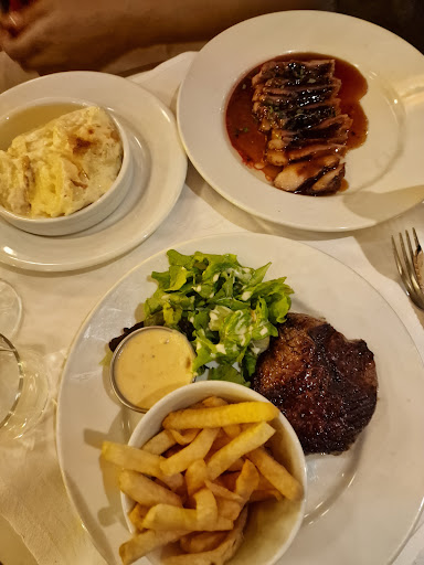 The service was really 50/50, litterally: one waitress was vivacious, nice and professional, one waiter was antipathic, stressed and border rude! I had an issue with my Pièce du Boucher (which was very hard and not a nice experience to eat). When I told the waiter, he swiftly took my plate and that was the end of it! Not a word, not an explanation. Was he gonna come back with a suggestion, another plate, a smile...? That's a mystery for centuries to come.