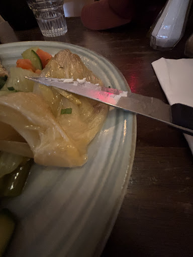 Dès notre arrivée, un serveur s’est présenté à nous et a immédiatement adopté une attitude froide, presque méprisante. Alors que mon amie fumait encore, il nous a retiré le cendrier sans un mot et nous a indiqué d’un ton sec que nous devions aller commander directement au bar, sans autre explication. C’était surprenant et déstabilisant, d’autant plus que les autres tables semblaient être servies normalement.