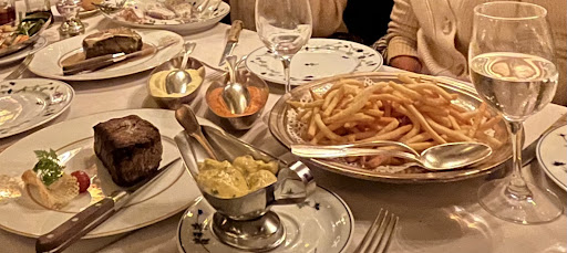 Read moreEveryone at the restaurant was very nice but I thought the head waiter was old school, aloof, and un-attentive unless you spoke French. The restaurant is old but has been renovated with an old charm. Fortunately, the hostess was very nice and checked on us a few times. Also, a young man took our order that was very polite and helpful. The house Terrine de Foie Gras was excellent. We both ordered the Fillet de Boeuf cooked rare the way the chef recommends but I was disappointed in pieces we received. They were both end pieces, one from the thin end and one from the thick end. Although we ordered them cooked the same way the thin one was much rarer than the other. The end was very thin and then got thicker, I do not know how anyone could cook it properly. At these prices I don’t think they should be serving cuts like this. (I hope it was not because we we’re Americans.) My wife did enjoy it though. The woman next to us order the Filet medium. It was well done and looked ruined. I think she should have returned it. The boeuf came with a generous portion of sauce. The sides were very good. Puréed white potatoes and sweet potatoes. String beans, and a huge plate of frites that were delicious. Overall a very hearty meal. We have been to Paris at least 10 times and are very polite. Most people are friendly and welcoming but in this case I felt like the head waiter was intentionally rude. Everyone else there was great. Between that and the cuts of meat we received I don’t know if we will go back. There were a lot of English speaking people there that I think had similar...