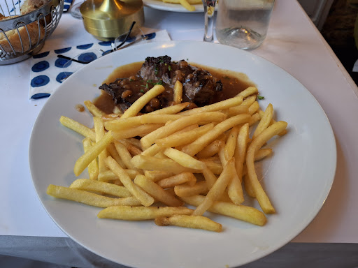Great find So we walked up and down Rue Mouffetard searching for a suitable restaurant. We started with Les Baux de Paris, but continued searching, just in case something even better was about. But we came back to it as it was the most appealing. The blonde lady who runs the place was very friendly, and very funny. She offered us an English menu - her own English, by her own admittance, was a bit weak, as is my own French but we got by fine. The waitress was also very good, friendly and has good English (thankfully) and also a good sense of humour. There is a 3 course menu, which although called a Lunch menu, we were allowed to order from in the evening. It's good value (and the tap water in a jug is free!) . There is a "Sirloin with pepper sauce" and NO! You don't have to pay extra for it, like you do at home. I got it, and I liked it very much. I promised them I would come back again, particularly as I was staying at the Young and Happy hostel immediately across the road. As we were out late the next 2 nights, we never did, but we made a point of going back there for our final evening, so impressed were we by them. Sadly, and unusually, it was closed that particular evening which was disappointing. But if I'm in Paris again, I would definitely go back ... even just for the laughs I had with the manager and the waitress - and the...