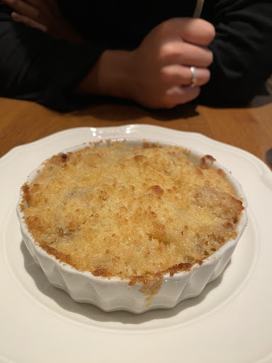 I Came back to this small family restaurant 4 years later. Menu changes often to the fresh products that are up to the season. Selection of dishes is limited and we hoped for a fish dish, but there were many with meat and luckily one with scallops. Ordered foie gras as a starter and it was divine! For the main I took scallops which were very good with a veggie side. My mom had veal with potatoes gratin. The veal was way too chewy for her, I finished it for her. I liked it but would prefer it was more tender as well. Potatoes gratin was super though. For desert we had apple crumble and it was delicious! I would add a scoop of ice cream to compliment it. One sediment of the evening was the price of the wine which we saw on the bill only. 14€ per glass of white wine! We didn’t choose it through menu. At the beginning of the evening the owner asked which wine we would like and we sad white and dry. And 3 glasses later we saw the price for it. Learning for me - to always ask the price from now on. And I would suggest to let customers know ahead what are the options of wines with prices. I am not an expert so i couldn’t appreciate it if the wine was some exquisite one for such a price. Other than that I would love to come back and taste...