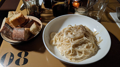 I really liked Linguine cacio e pepe. Pasta cooked al dente, great sauce.