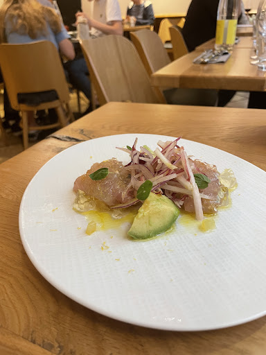 The food were AMAZING. It was definitely the best french course dish i’ve ever had in my entire life. They gave me a sweet potato starter while i was waiting for my entre. For my entre, i had a white fish tartar. It was decorated so nicely and had a tartar, cheese cream and mint taste along with it. I could enjoy multiple flavours using these chosen sauce. (I would definitely recommend this dish if you like sushi) For my main, I had a pork belly. The meat was so soft and the sauce went perfectly well with the pork. Also, they had a small amount of risotto on the side which i absolutely loved. And lastly for my desert, i had a strawberry/rhubarb desert. The base was so crispy and the whipped cream on top was so light and fenomenal. It had a fresh strawberry and rhubarb on the side which gave away another fantastic dish. If you are considering to go to this restaurant when you visit Paris, definitely go. I do recommend you to make a reservation quickly because this is indeed a popular...