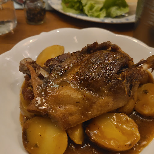We started with a dry sausage per our server's recommendation. It was delicious. I ordered the duck and my wife had the cordon bleu as main dishes. The duck was great. My wife did not enjoy the cordon Bleu because she thought it was too salty, but we looked at everyone around us and most tables had at least one person who ordered it. It could have just been our preference because all other...