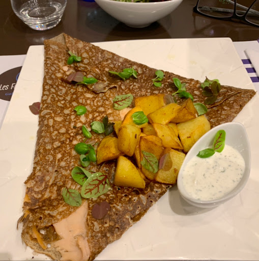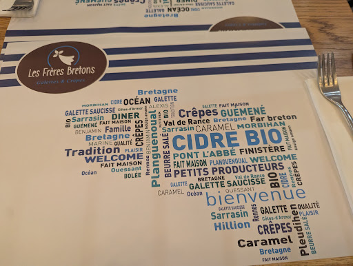 Read moreThe Bretons Freres was awesome. We had dinner galettes and dessert crepes. They make a lot of their food: homemade chocolate, homemade caramel, homemade whipped cream and homemade mustard sauce. Our kids had ham and cheese and said they were really good. We had sausage and it was good as well. We loved the roasted potatoes with the mustard sauce. We ended up ordering a second bowl. I ate a lot of mustard sauce, it was so good. We got a variety of dessert crepes and sampled each other’s. The homemade chocolate and caramel were delicious. I had the seasonal crepe which was chocolate, strawberries and homemade whipped cream. We also tried the homemade caramel and oatmeal cookie crepe. It was yummy too. The service was wonderful even though they were busy. Our server was very helpful and enthusiastic. We also bought a small jar of homemade caramel to enjoy at home. Highly recommend having a meal here. It was...