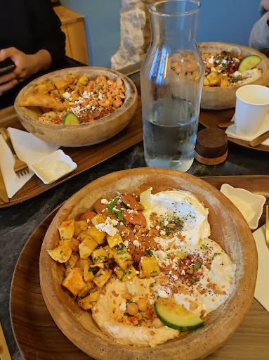 English : I had a very good experience there, the staff was very nice and their bowls really hit the spot ! All the mezze I tried were delicious ! The bowl are generous in quantity too, I definitely recommend this restaurant ! It might look cramped on the outside but there is actually a second floor so don't worry...