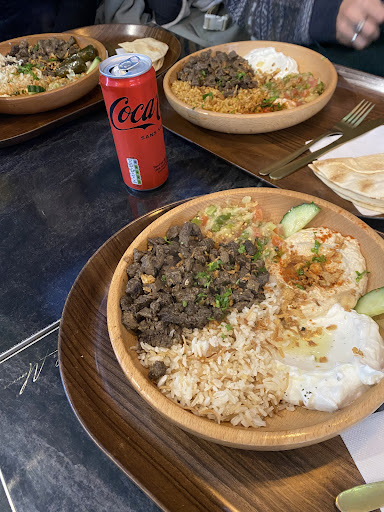 Service rapide et bonne ambiance, juste quelques remarques sur un ptit manque de sel dans les menus (qui fait perdre un peu le bon goût de la viande, c'était du poulet shawarma dans notre cas) et les mezzés que je conseille de faire soit des bol plus petits (on a pris du mezzé fromage ou y'avait trop, avec peu de pain, à certain moment il fallait finir avec la cuillère pour éviter le gaspillage) soit prendre des bol plus petit et proposé une composition de plusieurs mezzés en petites quantités afin de goûter à tout sans avoir l'estomac blindé avec un seul modèle de mezzé. L'accueil est chaleureux. Je retournerai pour essayer les...