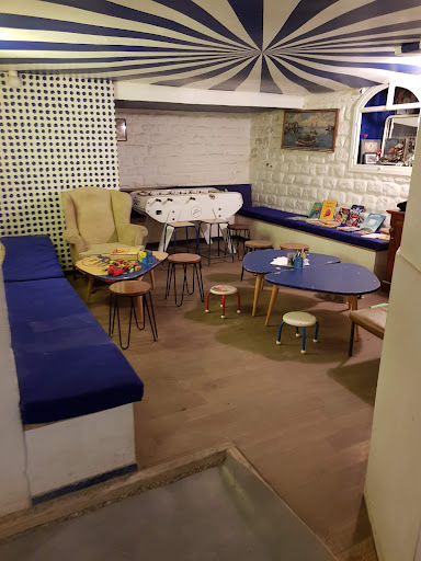 L'énorme plus du restaurant c'est la salle du bas (en cave), qui est réservée à leur accueil, avec des personnes dédiées à l'animation. Les enfants ont eu la chance d'avoir l'animatrice pour eux seuls, ce qui aide énormément : ils ont joué au babyfoot, cartes, kapla, pétanque pour enfant... Ils ont adoré. On a pu de notre côté profiter du déjeuner entre adultes sans soucis !