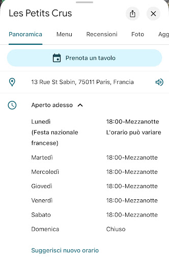 En plus, les réservations en ligne n’étaient possibles qu’à partir de 18h, ce qui confirme que l’ouverture officielle est bien à cette heure-là. Il faudrait alors mettre à jour les horaires Google et mieux former le personnel.