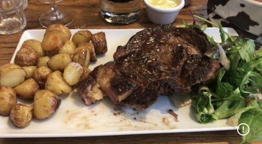 J'ai choisi donc une entrecôte de bœuf saignante avec ses pommes grenailles et de la salade. Malheureusement, j'ai eu mon entrecôte cuite à point et le boucher s'en est excusé, me disant qu'il n'avait pas fait attention. Ce n'était pas bien grave, j'apprécie aussi la viande à point puisque c'est ainsi que je l'ai consommée pendant de nombreuses années de ma vie. L'entrecôte était très bonne, bien cuite avec le côté braisé sur l'extérieur. La viande était tendre et pas sèche du tout. Pas grand chose à dire, j'ai pris du plaisir à la dégustation même si je dois avouer que je n'ai pas non plus été bluffé comme je j'espérais. C'était une très bonne entrecôte mais elle n'est pas pour autant mémorable, j'ai connu mieux en terme de qualité (plus cher, certes).