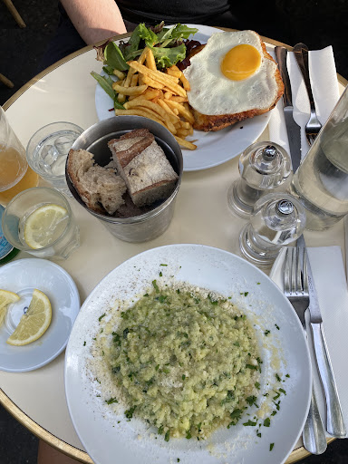 Read moreWe visited yesterday for dinner. Chose this location because it was one of the only places open prior to 7:30 in the local area we were pleased to find out that the staff was friendly and willing to help us in English. They have also had an English menu. Had a few cocktails to start off, a mojito & a gin and tonic they were delicious. For an appetizer we had the Delecatessen plate. Some of the meats were becoming slightly stiff as they dried but they were still tasteful along with the bread and pickles. For our entrees we had the Croque Monsieur/Madame dish as well as the Chitterling Sausage dish. I would give the Croque Monsieur/Madame dish a 10/10. It was extremely good. Speaking about the Chitterling Sausage dish, it's hard for me to judge because it was a first for me and I didn't care for it. But the mashed potatoes that came as a side were some of the best...