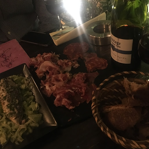 The place offers a generous terrace with a cozy ambiance and an amazing wine list. The food is on the pricy side with roughly 18-20€ per plate. The atmosphere and service are meant to be laid back, but they fall terribly short and end up unprofessional. We had a nine people table booked and once we ordered they warned us that they are unable to bring the food all at once.. but it was beyond our imagination. Between the first main dish brought out and the last one it was a wait of more than 40 minutes! The service was completely unattentive and you couldn’t catch their eye to bring bread or watter to the table even if your life depend on it. For dessert they assured us that it’s a quick service as they have most of the things already prepared. Not quite so. Some at our table ordered dessert, others had coffee. Again.. desserts came for some.. while the people waiting for coffee had a 30 min wait. The food over all wasn’t bad, but until they fix their service I will not go back. What we envisioned to be a nice dinner with friends turned out to be a night of find the waiter or stare helplessly at your friends while they eat and wait paciently for you food....