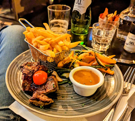 If you are NOT French, this place is not for you. The drinks are good. Although the location of this cafe is central and thus touristic, the staff do not have any cultural understanding of the importance of cross-cultural difference. I ordered a kids meal for my little one. It states on the menu “steak” and then received a patty. When I tried and asked the waiters that this is rather a patty than a steak, they became so defensive and took offense of me calling it a patty, saying “this is what we call it in France” and refused to replace or cancel the meal and my daughter ended up eating only the fries. I’d not recommend. If you are located in a touristic area, you need to be more open...