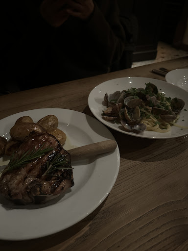 Starter: Prosciutto S. Daniele: good as usual - especially if you are into a bit saltier prosciutto. Mozzarella: rancid, outer layers dried out (past expiration date?). The latter was visible, don’t understand why it was served in the first place. Mains: Tagliata: ordered medium, arrived medium-well (to be kind, could also call it well done). Taste was dull. Pappardelle Gorgonzola: had no taste whatsoever, which is a result rather difficult to achieve using Gorgonzola. Maybe a tiny bit of Gorgonzola with a lot of cream and no salt whatsoever?