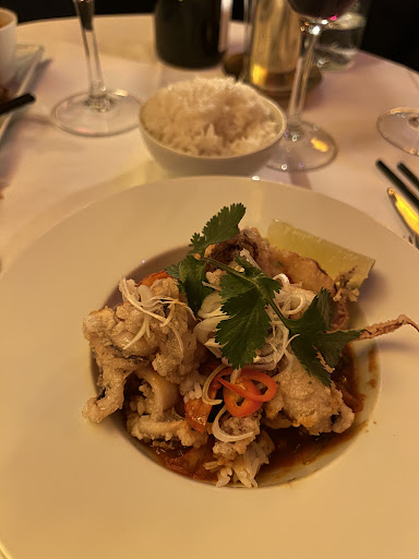 Read moreThe interior is lovely - velvety plush chairs, deem light, red lanterns. Food is also very good - good quantity, amazing fusion of tastes, fresh products. The grilled chicken ravioli are fantastic and the Tears of the tiger main to dye for. Deserts are not up to standard - our cakes were standard bakery type. Service is suboptimal to be polite. The customers were predominantly old guys with young silicon-enhanced girls and some older bourgeoise on a few tables but overall more splash than class...