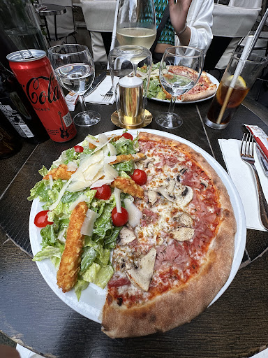 Read moreThe atmosphere was very nice, I like the location and all the greens but that make you feeling as if youâre in the garden. The staff is good. We ordered pizza and Cesar salad and told that weâre going to share all. We didnât have to wait for long, the dishes were served quite quickly. I was surprised that they were already shared. You know that moment, when you told that you will share and the waiter brings you two separate dishes - so, as you can see on the photos, here itâs not the same. The staff is really listening to your wishes. The amount of food was enough, a lot of salad, and I really enjoyed the chicken slices - it was delicious! The price for two people including coke, glass of wine, pizza and salad was around 50âŹ. I definitely recommend you to dine in...