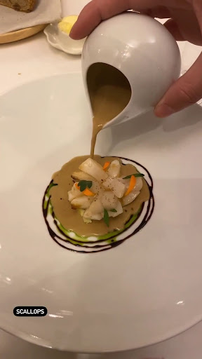 The small hors d’œuvres where very creative and we felt impressed and where very taken away. Especially with the artichoke chips, very creative with new thecniques never seen before Then the bun with smoked cream and different textures of tomato was creative, however just boring, you get a bun then home made bread, it didn’t feel special. We followed with Tuna and beet sorbet, it was a great palette cleaner, the taste was great and our daughter loved it. However there wasn’t a wow factor, that we can normally find for such amazing product. Next was the scallop, the taste was good and plating was fun, the scallop éclaté was a new experience however the flavours where okay together but yet again missing harmony, the brown sauce tasted good but didn’t look appealing with the plate, the purée was chunky I guess the chef wanted it that way but I felt it didn’t add anything a purée more smooth would have been better. The chicken cooked sous vide with a caramlized top with an excellent crumble a creative sabayon served on the side was fun, the fennel was nice but a bit boring, could have been worked in more detail then randomly they came with chicken legs and a roasted chicken consumé this was a very fun touch and we appreciated it very much. The green apple and celery was great and refreshing , the powder all over the bowl was playful and creative. The chocolate dessert and calamansi was missing a bit of balance and I didn’t feel like they went together, however this is very personal. Very hard work went into the dish and was very beautiful. Mignardises were beautiful and overall good. The champagne was excellent quality and very good, white wine was just okay, their red wine was really excellent! Overall very happy with the pairing. The service and staff where very good, they brought out plates at the same took the time to serve every plate at the same time, there was a nice flow. However the feel was very robotic and was missing a friendly feel.