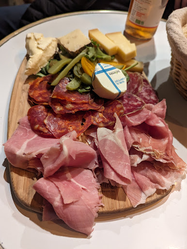 Very cute restaurant/bar on a quiet(ish) street. It's a super cozy place to hang out on a rainy night -- just be sure to reserve a spot ahead of time! It's all high-tops inside with some limited outdoor seating (where it's mostly people smoking). The staff is super friendly and willing to help. We got a small charcuterie and ate it at a table outside because we unfortunately didn't have a reservation, but we still enjoyed our time amongst the local Parisian crowd. Do be warned that on weekends, it does go pretty late (like 2-3am). But with a delicious menu, fantastic service, and a very hip French vibe, this is definitely worth a stop in on your visit to the city. Oh, and apparently, it also sometimes turns into a pop-up vintage clothing store during the...