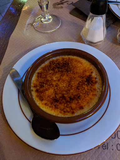 My group decided to eat here because the host insisted we check out the prix menu and assured me I'd have enough vegetarian options that weren't salad. 15€ for a starter, main course, and dessert. I was very skeptical, but my meal was great! I had the legume soup, which looked and tasted a lot like tomato soup, but was so delicious! I was almost full with just that and bread. The next course was the vegetarian plate, minus cheese and mushrooms. This plate was basically potatoes, corn and string beans. It wasn't anything amazing, but the seasoning on the potatoes was really good. For dessert I picked the creme brulee, which was 2€ extra. The flavor was very light. It wasn't bad, but wasn't something to brag about either. The server was nice, but did forget our dessert orders twice. We ordered everything at the beginning, which he admitted he didn't write down our dessert order. After ordering it for a second time, he forgot to bring out the creme brulee and handed us the bill after the rest of my group got their desserts. Otherwise service wasn't bad, the wait wasn't too long, and free WiFi was offered. Both floors of the place were very packed. The bathrooms are located on the bottom level, but there is 1 sink shared between the men's and women's stall. Only 1 toilet for each, and it's extremely cramped. The sink doesn't have any handles so it took me a while to realize there is a pedal on the floor to activate the water. I'd definitely come back here for the soup and just have that as...