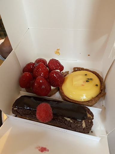 Read moreWe ordered a few items to take. Baguettes, eclair, chocolate croissants, a strawberry tart and a passion fruit tart. The lady was dry helpful in helping us choose what to eat. They were all very tasty. The bread was not hard like in the states. The next day we had chocolate bread and something like a chocolate muffin. They did not disappoint. Although they are a small store they attend to you fairly quickly. They also list their...