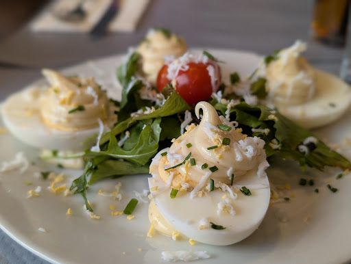 I also had the deviled eggs and they were perfect and creamy, with a strong horseradish flavor.