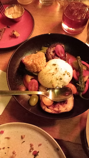Read moreC’est super bon C’est super bien décoré (enfin, c’est cosy) Je reviendrai pour la partie plus tardive pour profiter de la soirée qui a l’air vraiment sympa. Malgré tout Les plats et entrées ne sont pas assez généreux (un plat de 10-20€ à partager doit être plus généreux) il n’y a pas de carte papier le soir (c’est fatigant ce 100% digital. Quid de ceux qui n’ont pas de téléphone / ne sont pas agiles avec / n’ont plus de batterie / ont envie de ranger leur téléphone à table ?! Même si la carte change souvent faites des ardoise ou trouvez quelque chose qui n’oblige pas les gens à être encore et encore sur leur téléphone. Et l’écologie ne peut être une excuse pour quelques feuilles de papier, enlevez plutôt un plat de viande si vous voulez avoir un impact) le service n’est pas désagréable mais pas non plus incroyable. Par exemple on nous demande d’arrondir nos paiements à l’entier supérieur lorsqu’on coupe l’addition. Pas grave ces quelques centimes mais c’est étonnant quand même. enfin ce coté deux services / on vous met de hors est hyper oppressant et pour moi un frein pour retourner dans ce restaurant. Je trouve que le restau se donne un genre avec videur à l’entrée qui manque d’humilité. Par ailleurs être obligée de partir alors que les personnes du service suivant ne sont pas arrivées c’est hyper dommage. Nous aurions pu commander encore beaucoup à manger comme à boire, ce qui aurait tenu lieu de deuxième service niveau CA pour le restaurant. C’est donc ridicule de chasser les gens comme ça même si c’est annoncé. D’ailleurs le fait de l’annoncer sur le site et encore une fois à l’arrivée est hyper oppressant, on se sent comme un portefeuille et pas très accueillis. En plus beaucoup de monde se présente en flot continu pour avoir une table, il y a de quoi faire plusieurs services sans bousculer ceux qui souhaitent rester un peu, comme n’importe quel restaurant qui ne s’en porte pas plus mal. A croire que prendre des réservations de façon traditionnelle en estimant le temps de repas - sans venir affirmer aux convives « Il n’y aura pas de dessert du coup. » 25 min avant la fin du créneau pour nous intimer de déguerpir - est un vrai metier. Si vous avez peur que les gens prennent trois tacos et attendent ensuite la soirée mettez une reconso obligatioire vers 21h30/22h. Ou bougez-les sur un espace bar, mais ne privez pas ceux qui veulent goûter vos desserts sans leur...