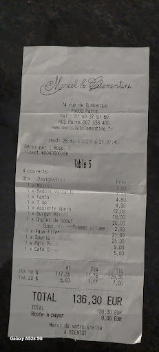 Read moreMarcel amd Clementine is our favorite restaurant in Paris!! The food was delicious and the service was great. My family and I went to see the Sacre Cœur and we were hungry afterwards and we walked around for somewhere to eat. There were other cafes and restaurants to choose from, but we felt that they were unwelcoming. When we finally walked into M&C - we got a warm welcome from our hostess and server Jessica. Her english was perfect and even better was her personality. She was friendly and made us feel very welcomed. I had the steak special, my husband had the seabass and the kids shared a plate of fish and chips. We absolutely loved the food! We will be back!...