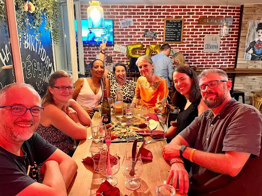 Friendly staff who are courteous, very helpful and speak some English. Fantastic chips! Superb cheese board too! Busy and very much a place locals go to, but everyone is welcome! Only downside sides are that it gets very busy ( arrive early for a seat) but room for standing both inside and out , and the music inside can get loud. However, when asked they did turn it down! We return every year; several times per visit as it is not a "fake" French bar! Good people! Photos were taken...