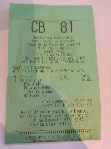 Read moreDu grand nimporte quoi chez eux !!! C'est le pire McDonald's de Paris (et je peux vous dire que j'en ai fréquenté des mcdos) ou du moins, le pire mcdo du 20éme. 90% des commandes deliveroo que j'ai passé dans ce McDonald's étaient incomplÚtes et bùclées. Hier, cet établissement s'est permis d'annuler ma commande deliveroo aprÚs m'avoir fait attendre 50 min. Que je commande en ligne ou à emporter, il y a des oublis. Le pire c'est que la directrice à laquelle j'ai eu à faire, pour réclamer gentilliment les multiples oublis de la commande de la veille, accompagnée de ma mÚre handicapée, a été trÚs désagréable et offensante et a refusé de me remettre les produits oubliés, en se permettant de m'ordonner d'aller acheter dans 1 autre mcdo si le sien ne me plaisait pas. Oublis constants, lenteur, commandes bùclées, personnel et directrice peu professionnels. Je serai ravie d'apprendre qu'ils fermeront bientÎt. à fuiiiiir ! Privilégier le restaurant Ben's et coffee,...