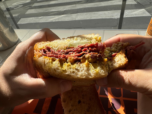 Read moreC'est la première fois que j'écris un commentaire, mais l’expérience en bouche était si mauvaise qu'il me faut la partager. Je ressors avec un vrai sentiment d'amertume d'avoir gâcher ce repas en décidant finalement de passer la porte de MELT DELI, nouvelle adresse street food du 9e. La devanture est prometteuse et le design soigné, l'expérience s'annonçait bonne. Et bien que l'accueil ait été chaleureux, la découverte des sandwichs une fois sur table : un beef brisket pour ma part et un pastrami pour mon ami, j'ai compris que MELT DELI était un de ces lieux parisiens où cuisiner rime avec réchauffer et sacs sous vide. En bouche, l'umami de la viande fumée a laissé place au goût de gras, trois pickles et une sauce banale recouvre ce pâté de viande hachée, voir écrasée, et alourdient bien le tout. Côté pastrami, le pain était bien trop imbibé de gras pour être flatteur, alors que la viande, était quant à elle bien sèche. Le chou n'avait aucun goût, alors qu'il devrait apporter tout la légèreté à ce sandwich emblématique, avec un petit kick d'acidité. Enfin côté sides, là aussi une vraie déception : une salade de pomme de terre à l'aneth, qui ressemble à une salade cantinière, sans aucun goût d'aneth, servie bien froide, mais pas fraîche ; la loaded potato était simplement mauvaise car pourtant si simple et bien que refaite 2 fois, elle était tiède, couverte de cheddar lui aussi froid et donc non fondu ; la sauce BBQ et la sauce blanche font ici un bien mauvais mélange. Un coca pour lui et une bière pour moi, pour une addition à deux très salée pour cette qualité : 48€. Quelle déception, très loin de l'idée que je me faisais de...