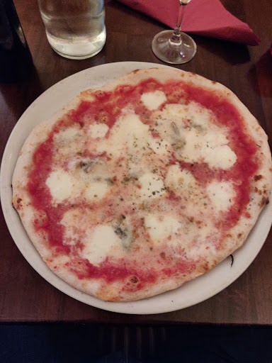 Depuis que je suis allé à Naples et sur la côte Amalfitaine il y a un an, j'ai du mal à manger de la pizza à Paris. La pâte, la garniture, tout à un goût moins "parfumé", et pour cause la plupart des pizzerias à Paris ne sont pas tenues par des italiens. Ici, j'ai tout de suite vu que nous avions de vrais italiens. Alors, j'ai voulu tenter. J'avais très envie d'une 4 fromages, car ce fût ma pizza préférée lorsque je fus à Positano l'année dernière. La pizza qui m'a été servie avait une bonne tête, pâte bien fine comme il se doit pour une vraie pizza italienne. Par contre, je fus surpris de voir beaucoup de sauce tomate sous mes fromages (voir photo). Cela a gâché la pizza. Elle n'était pas mauvaise mais vraiment le goût de la tomate couvrait celui du fromage. Je ne me suis pas plaint, car je me suis dit que pour beaucoup de monde, italiens compris, les pizzas doivent avoir de la sauce tomate. Sauf à Naples et à Positano. J'ai d'ailleurs revérifié depuis et effectivement la vraie 4 fromages ne comporte pas de sauce tomate. J'ai donc un avis partagé sur ce restaurant (d'où les 3 étoiles). J'ai vu passer des plats de pâtes qui avaient l'air bon. Mais le Paris-Rome qui est juste à côté a déjà de très bonnes pâtes que j'ai dégustées plusieurs fois. Je réessaierai peut-être une pizza, pour une...