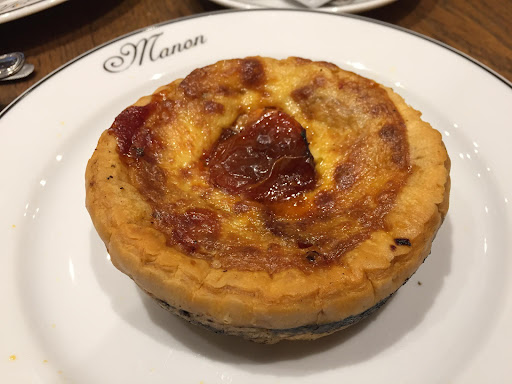 We stayed in an area hotel and had breakfast at Miss Manon, taking a Chorizo Quiche and almond croissant along with coffees. The quiche was savoury and tasted rather good. The croissant was just ok, we'd opt for something different next time. Coffee drinks were just fine.