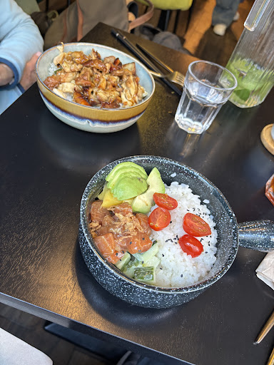 Le plat principal que j'ai choisi était le Super Bowl Saumon, au prix de 11€. Ce plat était composé de riz vinaigré chaud, mais j'ai trouvé qu'il y avait une prédominance de poivre, ce qui masquait légèrement les autres saveurs. De plus, la portion était un peu petite, ce qui peut décevoir certains appétits plus voraces. Cependant, la présence de mangue verte apportait une fraîcheur bienvenue, tandis que la sauce relevée au wasabi donnait au saumon une note piquante et exotique.