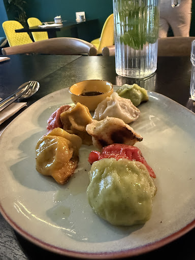 La carte propose un plat de raviolis savoureux à base de poulet, boeuf, legumes et de porc, au prix abordable de 7€. Les raviolis sont présentés de manière appétissante avec une variété de saveurs et de couleurs. Certains sont épicés, tandis que d'autres sont juteux et riches en coriandre. J'ai particulièrement apprécié la texture croustillante de certains raviolis, qui contrastait agréablement avec l'épice vibrante qui se répandait sur ma langue.