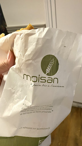 Je préfère généralement le pain Moisan au Poilâne, son goût et sa texture, en plus, il est bio et je le trouve plus digeste. Par contre, celui que j'ai acheté dernièrement, trop dur et trop salé : air trop sec ou agents dessicants dans la recette ??? Ce serait le comble pour du bio... Peu de monde dans le quartier en août, d'accord, mais ça ne justifie pas tout.