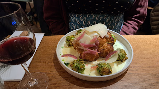 Read moreMuch recommended restaurant if you would like to discover the French kitchen with all their cheeses at its best. The restaurant itself is modern decorated. Downstairs, you'll find a cheese store and a part of the restaurant, upstairs are more tables available. We went upstairs as this part looked like the best spot to have dinner. The staff was friendly and helpful in choosing the vegetarian options. We ordered wine and two main dishes (Mont D'or and Chou'fort). Both dishes were outstanding. The cauliflower was perfectly cooked and topped with a creamy cheese sauce. The melted mont d'or cheese was huge and served with potatoes and fresh baguette. As dessert, we ordered the baked apple with cheese cream. This was the perfect start of the evening. We had a problem with a double payment, which they later solved. Be sure to make a reservation as the restaurant is fully...