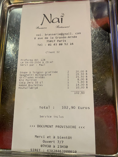 Read moreIt’s a Lebanese restaurant but not exclusively because it has large menu of good eats from pastas, burgers and pizza. I stumbled upon this restaurant during dinner time because I was in the area seeing the Arc de Triomphe. It had lots of diners inside compared to the neighboring restaurants which was a good sign. I peered inside and the staff immediately welcomed me to look at the other diner’s food dishes. From the displays, I was settled from what I saw.