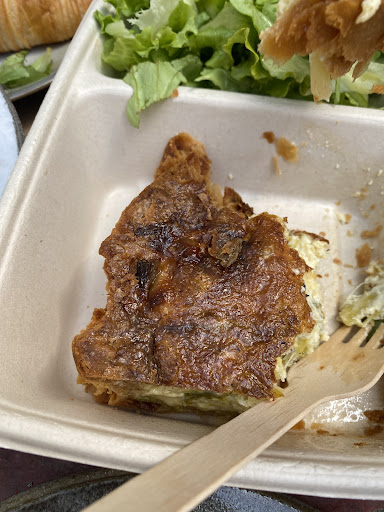 almond croissant (the best Iâve ever had in my life- Itâs a sweet dessert croissant) leek & cheese quiche la Madelines chouquettes (I was eyeing them but had ordered too much already , the guy was so nice and brought some out for me to try) salted caramel French toast (itâs not your average hot French toast. It was good but similar to the almond croissant and I preferred the almond croissant more)