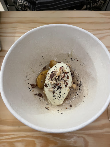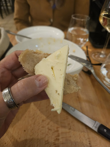 Read moreOur waiter greeted us in the most jovial amd friendly manner upon arrival! He was very accommodating to me as a disabled person and gave us a choice of tables. He found a spot to put my walker and we were all set! After explaining the lovely menu, he recommended a bubbly that was not on the menu and said "its better and less expensive and he was right!" The salmon amd zucchini starter was complex, yet light and smooth. We asked for French butter with our warm bread and it was so delicious that I joked I was having "a little bread with my butter" (see photo)! Our main course were sumptuous, with the tuna being our favorite, cooked to perfection. The almond cake with fresh peaches was a flavorful finish to the meal, having a caramelized crunchy crust and soft inside. The value for this meal was the best part. I think this place it's on its way to a Michelin star. Final note: there was only one waiter and the (sous) chef and the restaurant was full, but They moved quickly and...