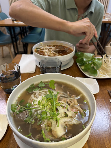 Read moreJ'y déjeune régulièrement depuis son ouverture. La qualité est toujours présente et égale ; pas de déception culinaire. Les plats sont d'origine d'où mon plaisir de manger vraiment vietnamien et non un métissage décevant. Les différentes déclinaisons du phở font honneur au nom du restaurant. Le bouillon est très bon (c'est ce qui fait la qualité d'un phở) et la concentration est juste dosée (épices et sel). Les pâtes sont fondantes sans être molles (nous ne sommes pas en Italie avec le "al dente") ; la viande est de qualité. Les accompagnements essentiels sont là : les herbes (basilic thai...), citron, soja, sauce Hoisin (!), sauce Sriracha, piments frais si besoin... Le service est rapide mais il faut laisser aussi le temps de bien préparer les plats. La patronne accueille et sert les convives avec le sourire. Elle est attentive au confort des clients. La salle est claire et conviviale. Point important en cette période : elle est climatisée ! Je viens aussi pour les autres plats : saumon grillé au tamarin, marmite de porc au caramel (comme au Vietnam), marmite de crevettes au tamarin, seiches sel et poivre... Parfois, c'est la surprise (agréable) du plat du jour. Si je devais résumer la cuisine proposée par ce restaurant en une qualité, je dirais : "le juste dosage"... du sucré/salé, du gras réconfortant à l'acidité apportant du peps, du mou/de la mache... Les tarifs sont très raisonnables pour cette qualité mais comme je suis gourmand, je me fais plaisir et sors souvent des sentiers battus du menu... C'est dit ! J'y...