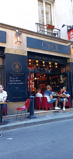 Brasserie O’Neil is a nice brewpub which has decent pub fare and tasty house beers. It occupies the ground floor of a 5 story white building. The front facade is black with gold lettering. Outside is a single 2-person sidewalk table. The interior is a long narrow room with their 8-stool bar on the right. Behind the bar are illuminated shelves stocked with liquors. Near the entrance on the left is a tiled area with shiny copper brewing vessels. They are beauties and produce good beer. They have 5 house beers on tap, which are available by glass, sampler flight, or pitcher. These are medium bodied and taste great. In the back of the restaurant are dining tables and booths and on the right is a split level. Upstairs are a few more tables and downstairs is a windowed room of what appear to be open top fermenters. The place has a wooden floor, stone and brick walls and black wood beams up to the red ceiling. The staff is welcoming and friendly but can be slow. Their pub food menu consists of salads, burgers, flammekueche flatbreads, and a few plates. Overall, the best feature of the place...