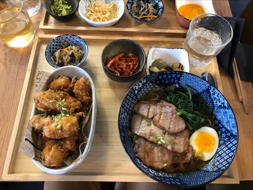 By the time we tasted the food, we realized our expectation was too high. The bonchangs look korean but without the umami. Ramen wise, the akali noodle is not bad as ingredient, but the soup lack depth. Chasui was also not as tender as you’d expect from a standard ramen joint. They should slow cook it for longer. Then char the surface for effect if necessary… maybe someone prefer a more chewy texture but not common of put in ramen. Fried chicken also look promising, I like the light version of locating then heavy breading… unfortunately the ingredients aren’t consistent. Then boneless pieces are fresher than the wings. It’s a matter of ingredient selection and management. The sauteed pork with kimchee also reflected the same issue if lacking in flavor intensity. Hopefully intime they can find a good balance.