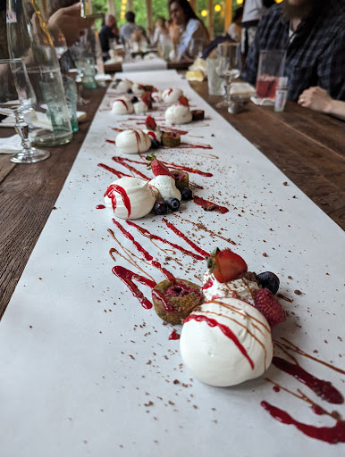 The food is an experience with the serving directly on the table. The idea is excellent, but the execution could be better. The quality of the ingredients and the cuisine are generally tasty, and the dishes on the vegetarian-tasting menu are outstanding.